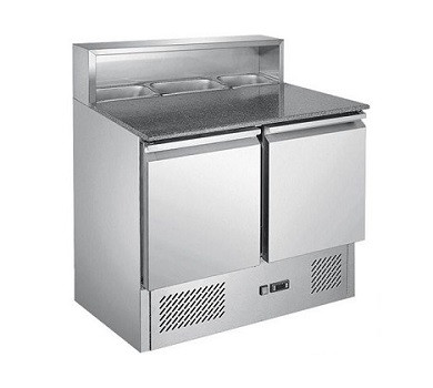 Стіл для піци PROFI LINE Hendi 232859 призначений для ефективного зберігання інгредієнтів та підготовки піци на професійній кухні. Модель обладнана двома дверима та гранітною стільницею, що забезпечує достатньо робочого простору для приготування страв. Холодильна камера підтримує стандарт GN1/1 і має надставку для 5 гастроємкостей GN1/6 (замовляються окремо). Завдяки посиленій вентиляції та цифровому термостату, інгредієнти зберігаються у відповідних температурних умовах.
